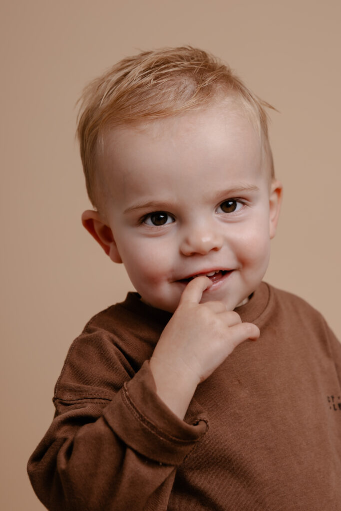 Kleding speelt een grote rol in de uitstraling van de foto. We bespreken samen de stijl die je voor ogen hebt, zodat we de kleding kunnen afstemmen op de gewenste uitstraling. Ik werk met verschillende achtergronden die goed passen bij rustige, tijdloze kleding in zachte kleuren. Voor kinderen vermijden we te drukke prints, zodat de focus echt op hen ligt. Volwassenen kunnen kiezen voor een casual, zakelijke of creatieve look, afhankelijk van het gewenste resultaat. Er is ook altijd de mogelijkheid om van outfit te wisselen voor verschillende stijlen.